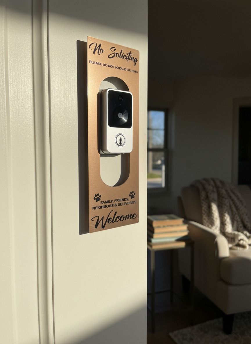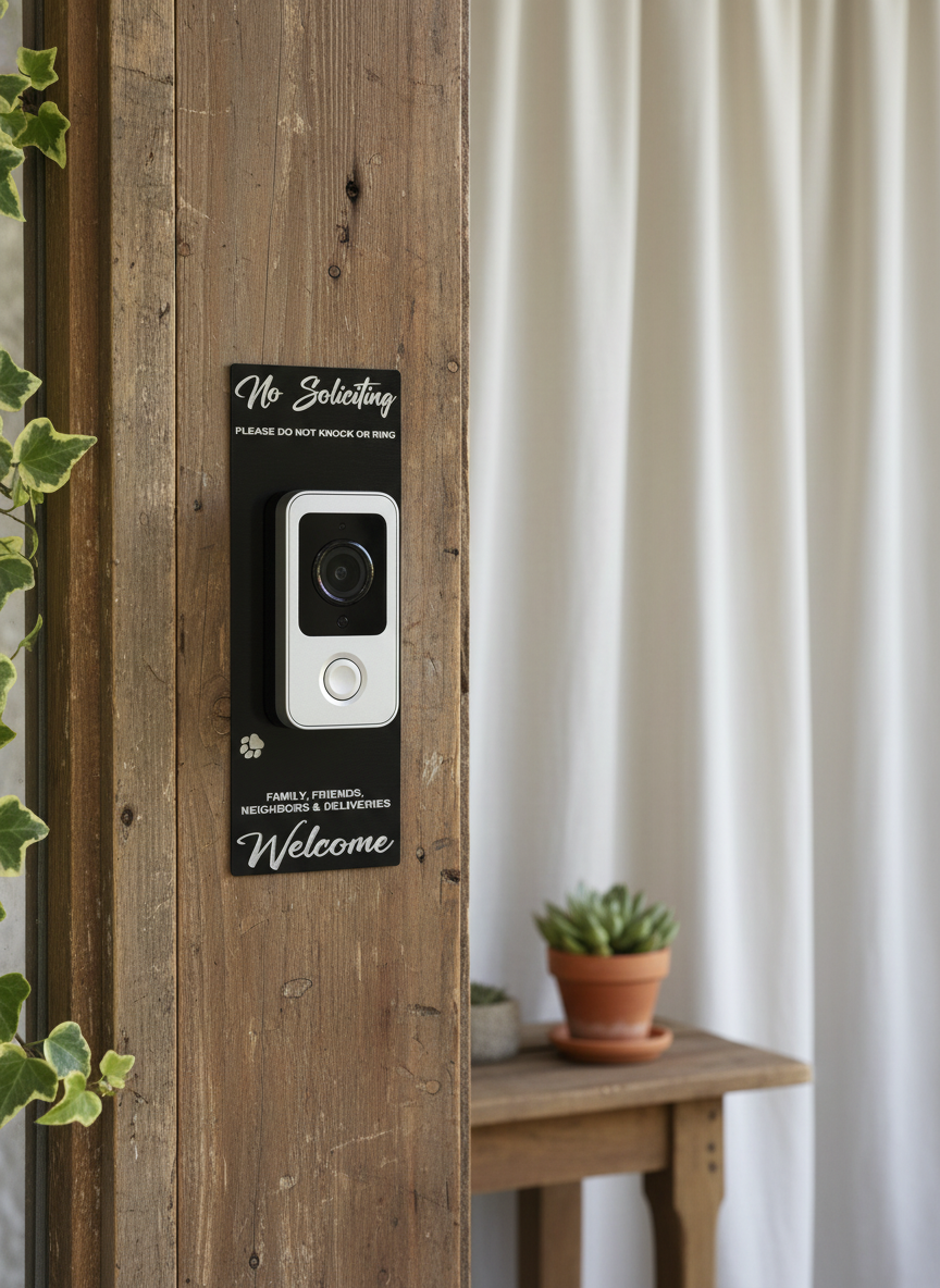 Customizable “No Soliciting”, “Don’t Ring” Video Doorbell Sign