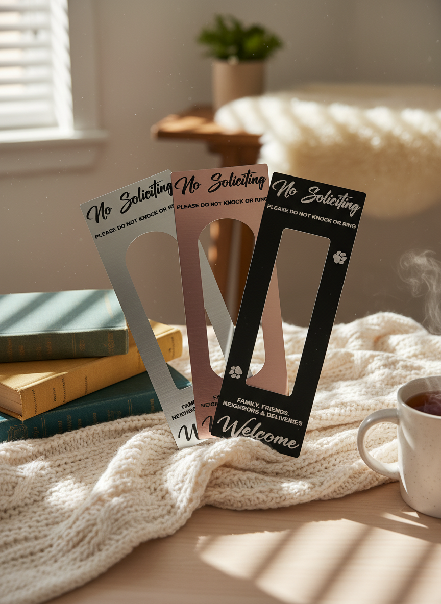 Crafted from high-quality, weather-resistant material (flexibrass acrylic), this doorbell backplate is the perfect functional upgrade for your front porch entry. Whether you’re looking to protect your privacy or just want to add a unique, finished look to your home exterior, this sign blends practicality with modern style. It makes a thoughtful housewarming gift or a smart addition to your own home, ensuring your peace and quiet is respected without sacrificing hospitality.
