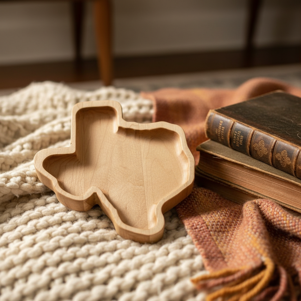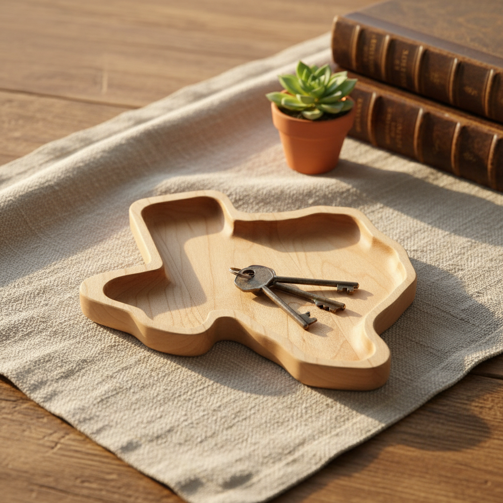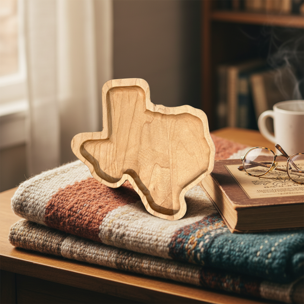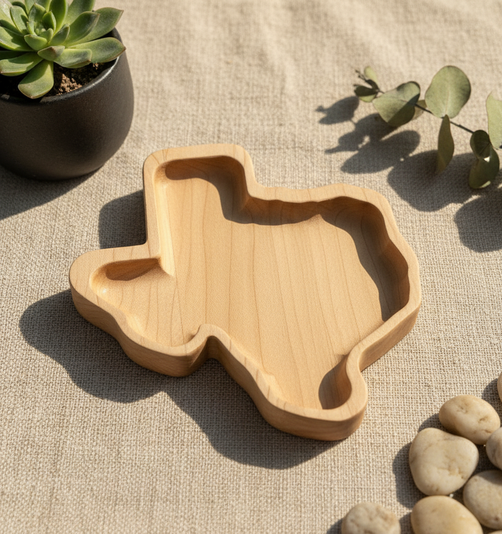 Step into the heart of Texas with this exquisitely crafted **Texas shaped wooden tray**, a timeless piece that brings the spirit of the Lone Star State right into your home. Imagine this beautiful, rich maple wood accent gracing your entryway, holding keys and loose change, or becoming a charming centerpiece on your coffee table, ready to host small snacks or cherished keepsakes. Each curve and line of this tray meticulously follows the iconic outline of Texas, making it more than just a decorative item – it’s a subtle nod to heritage, pride, and the warmth of Southern hospitality, handcrafted to perfection for those who hold Texas close to their heart.