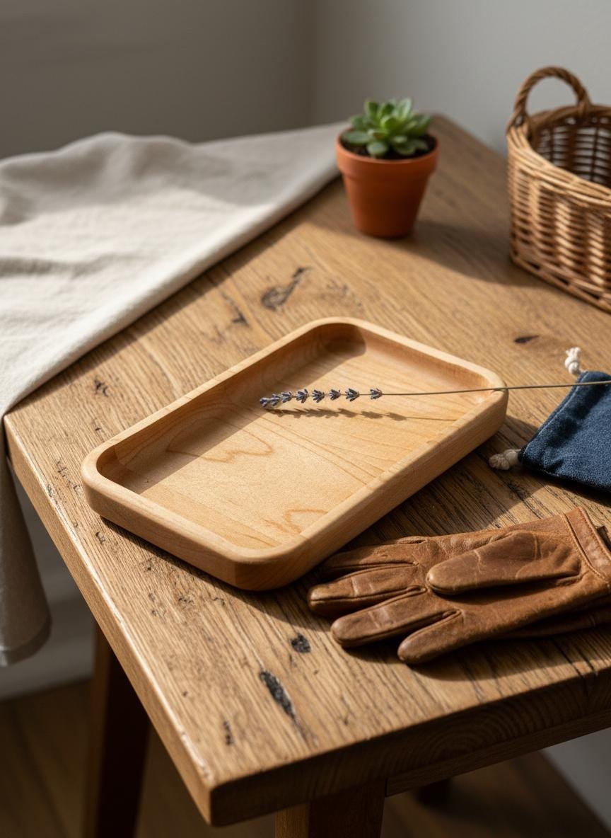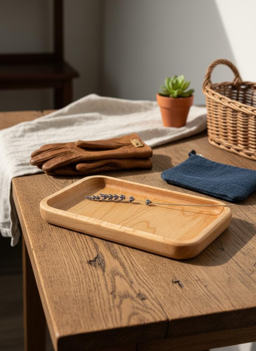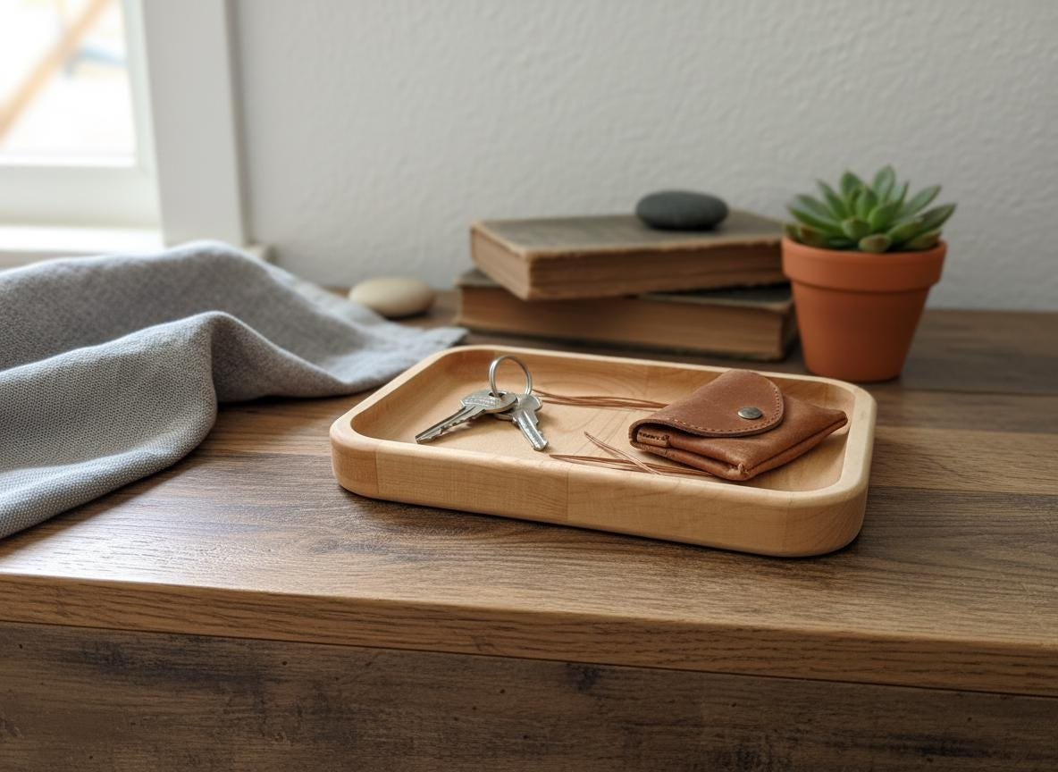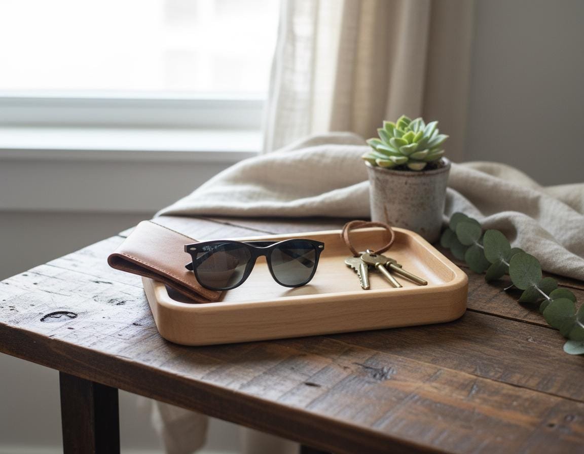 Keep your daily essentials organized and accessible with this beautifully handcrafted solid maple wood valet tray. Made from natural, light-toned maple wood with smoothly rounded edges, this minimalist catch-all dish is perfect for decluttering your nightstand, entryway table, desk, or dresser. Its simple yet elegant design complements any rustic, cozy, or modern home decor.
