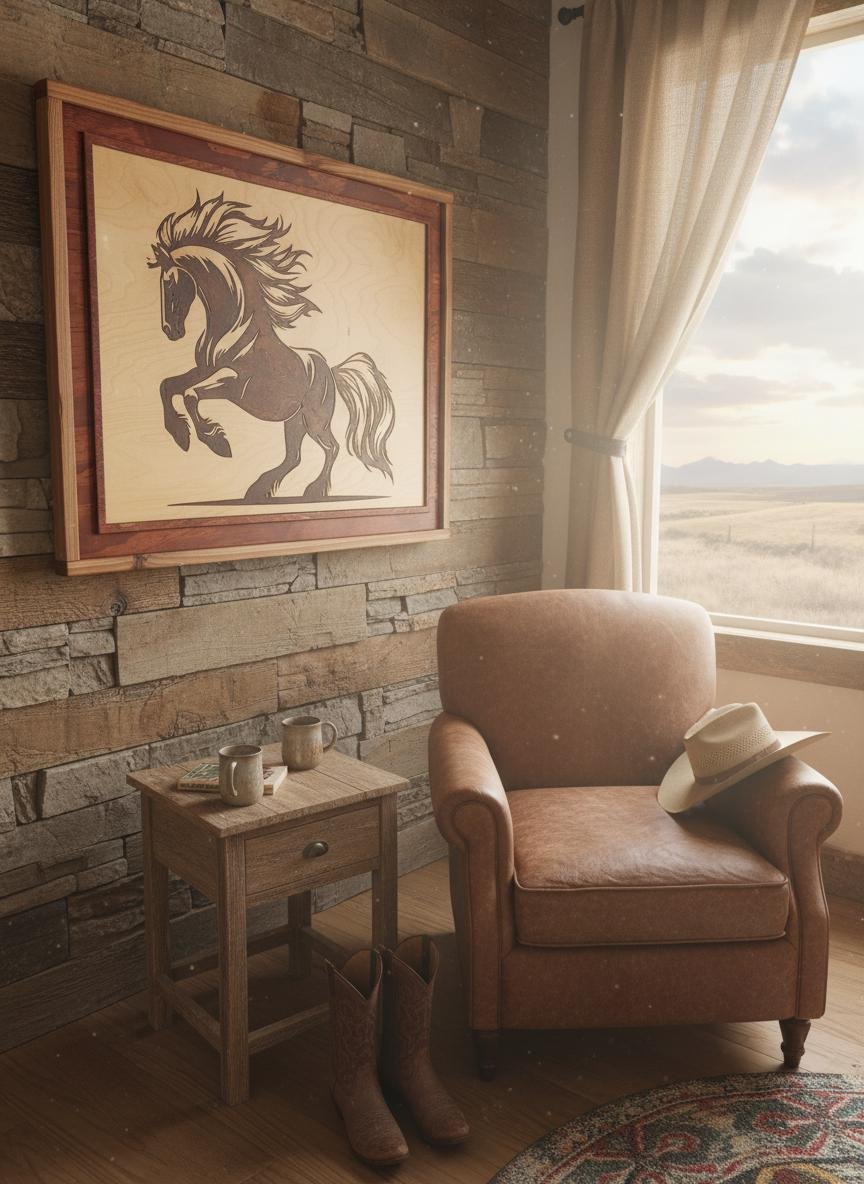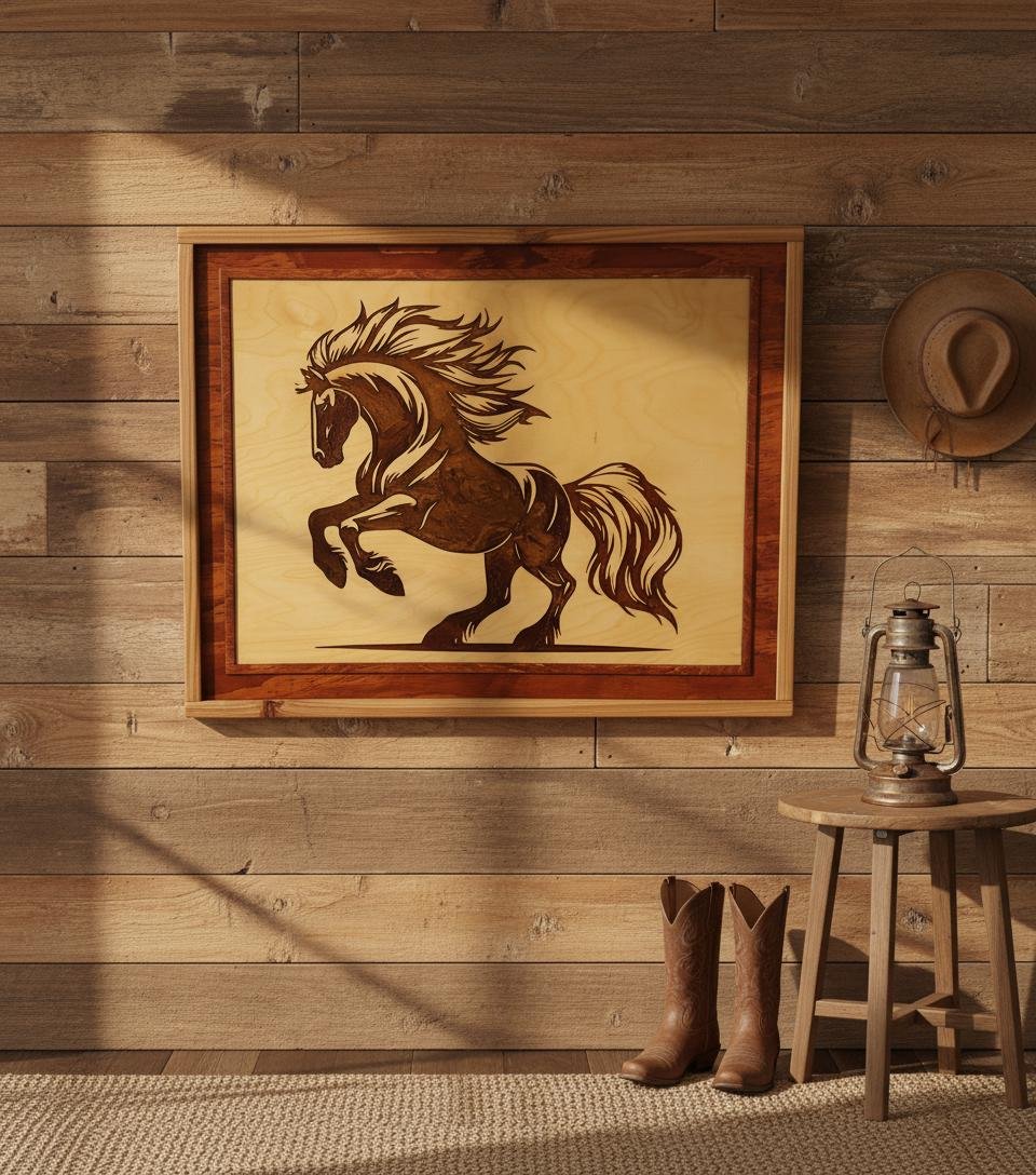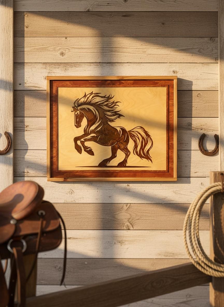 This rustic masterpiece is the perfect centerpiece for any western-themed living room, farmhouse office, or equestrian lover’s home. Whether you are looking to add a touch of rugged elegance to your decor or searching for a unique gift for a horse enthusiast, this durable and timeless wood art serves as a bold statement of freedom and power. Ready to hang, it promises to be a conversation starter for years to come.