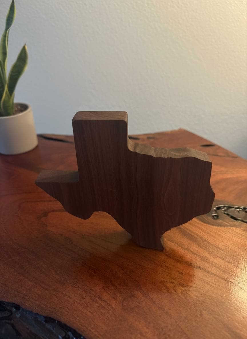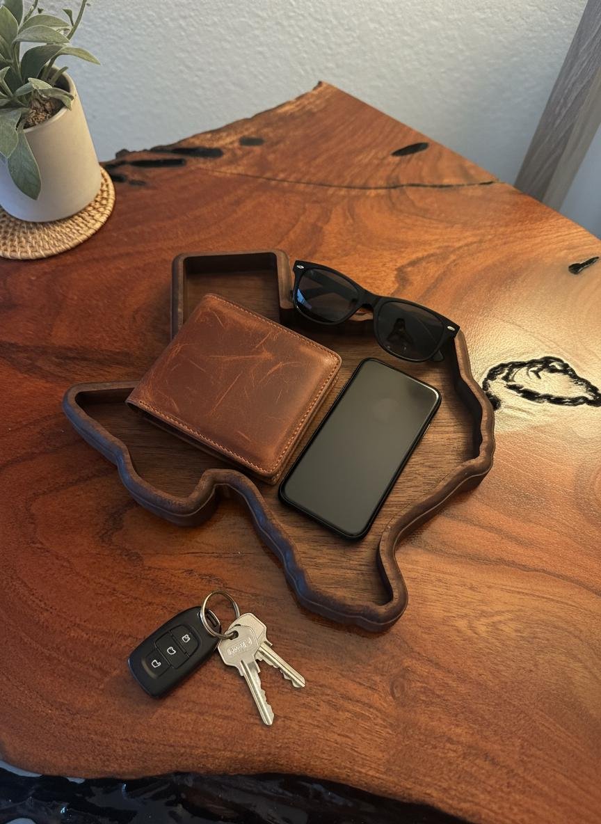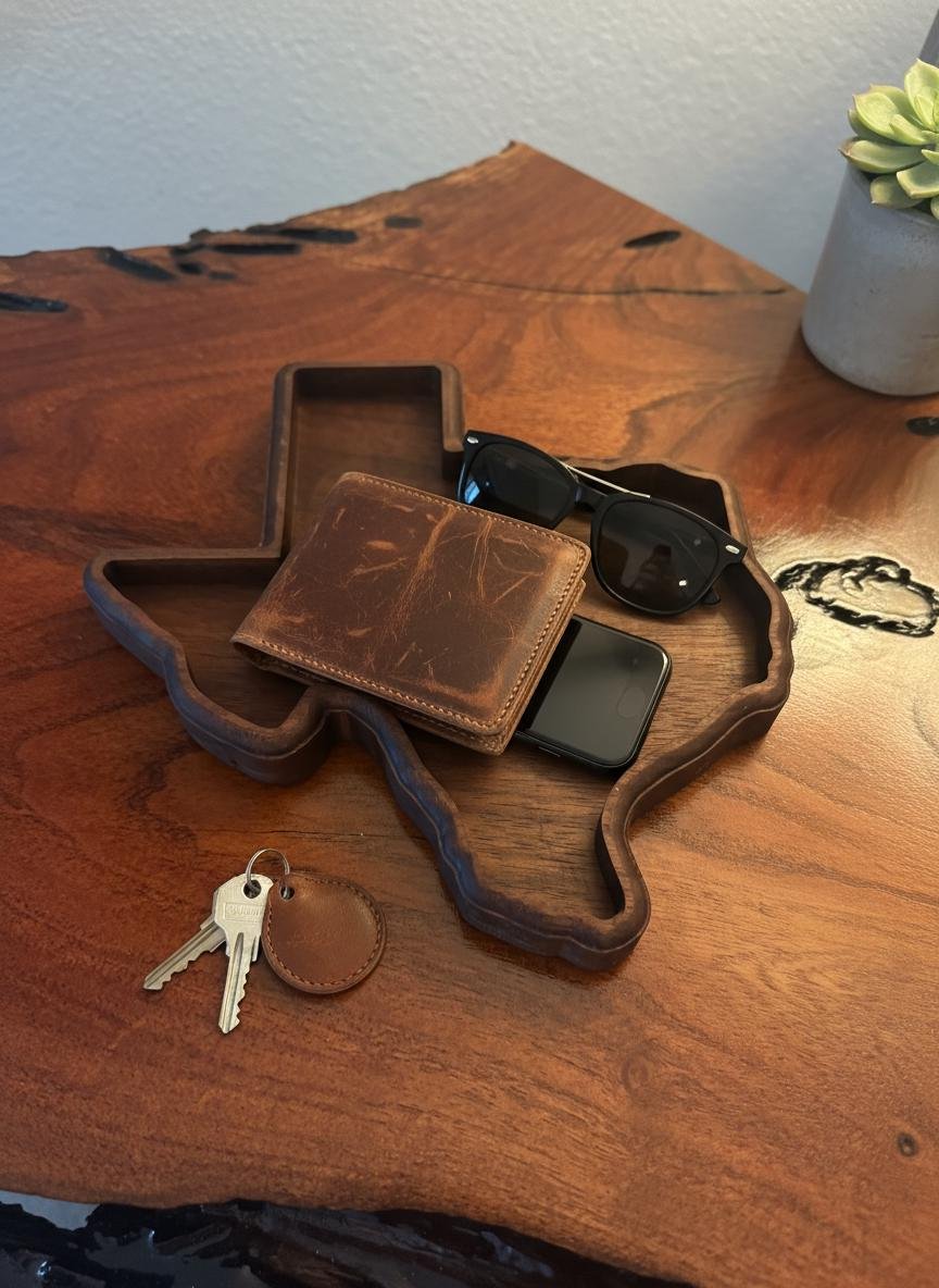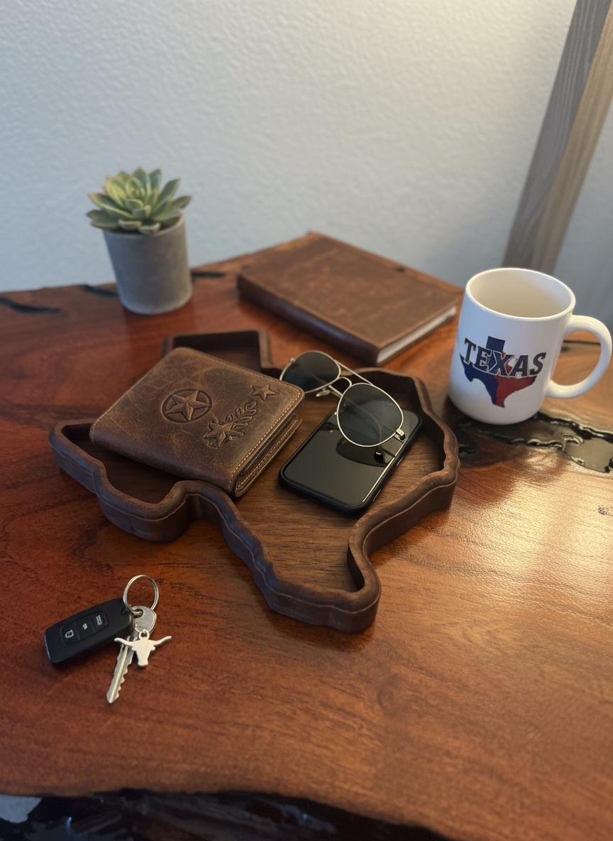 Iconic Texas Design: This **Lone Star State tray** is carved into the unmistakable shape of Texas, celebrating your state pride or serving as a thoughtful memento for a Texan enthusiast.